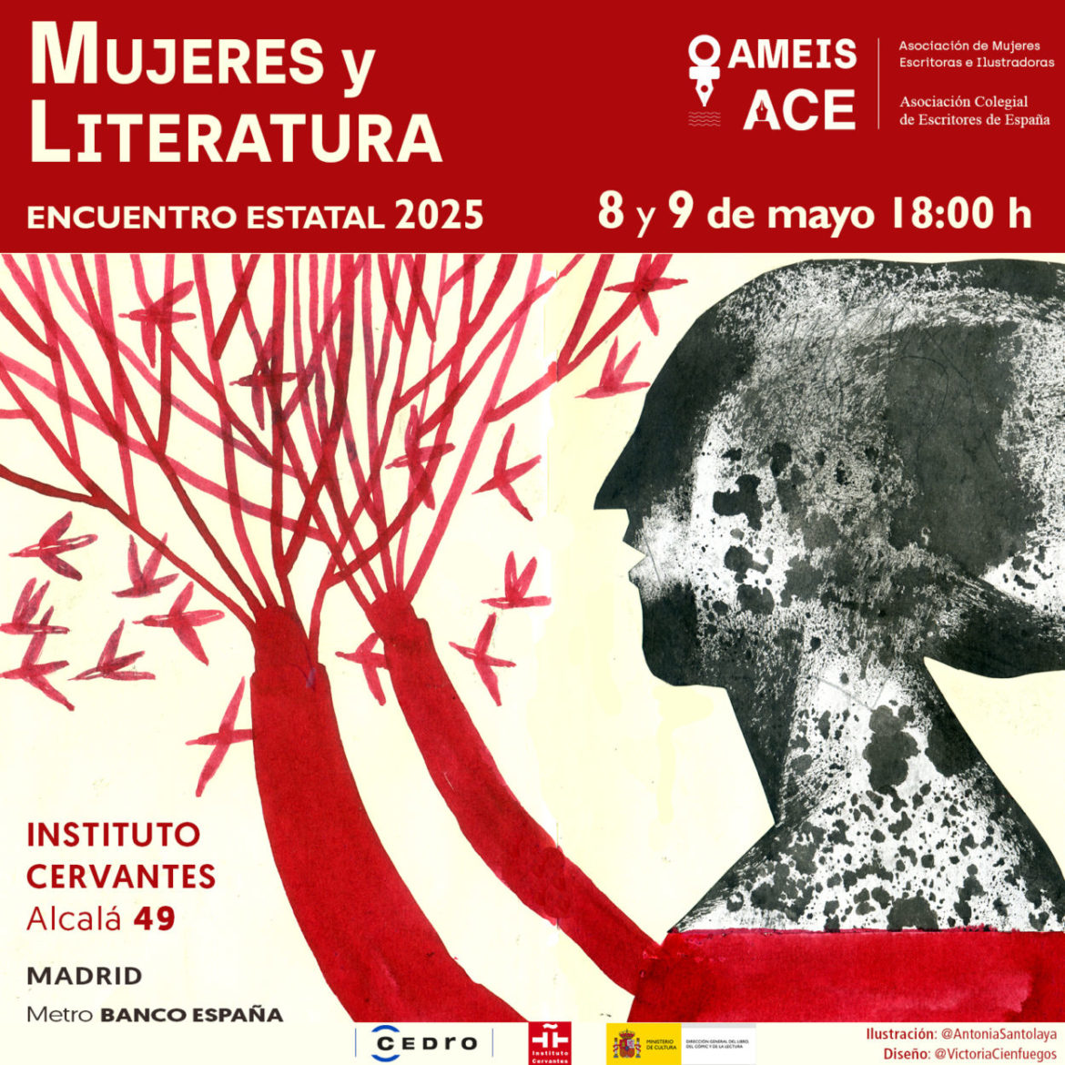 La Asociación Colegial de Escritores (ACE) y la Asociación de Mujeres Escritoras e Ilustradoras (AMEIS), con el patrocinio de CEDRO, organizan el I Encuentro Estatal Mujeres y Literatura, que se celebrará los días 8 y 9 de mayo de 2025 en el Instituto Cervantes de Madrid.