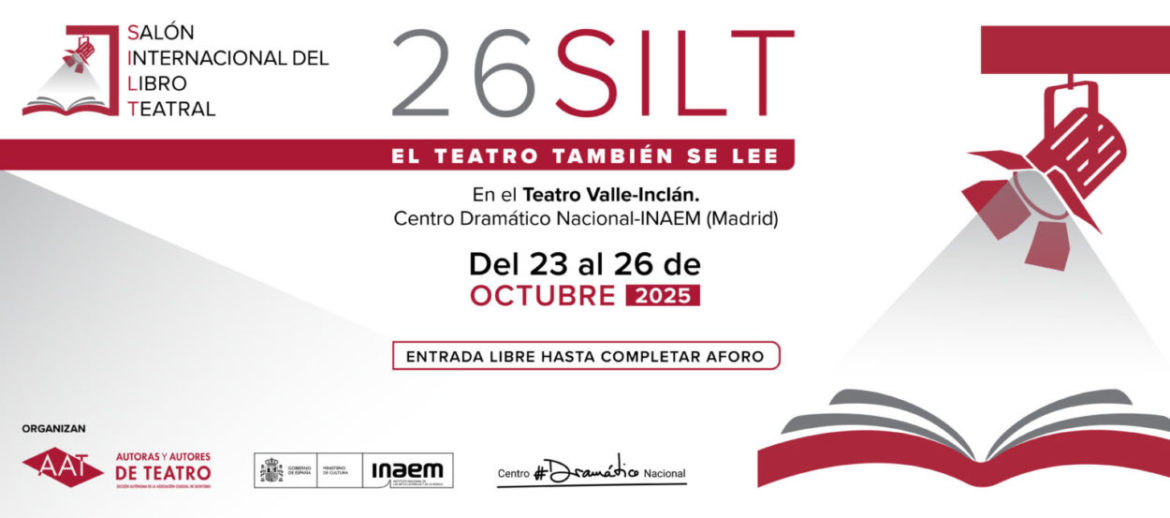 La Asociación de Autoras y Autores de Teatro (AAT), sección autónoma de ACE, organiza la 26 edición del Salón Internacional del Libro Teatral, que tendrá lugar del 23 al 26 de octubre de 2025 en el Teatro Valle-Inclán (Madrid), sede del Centro Dramático Nacional.
