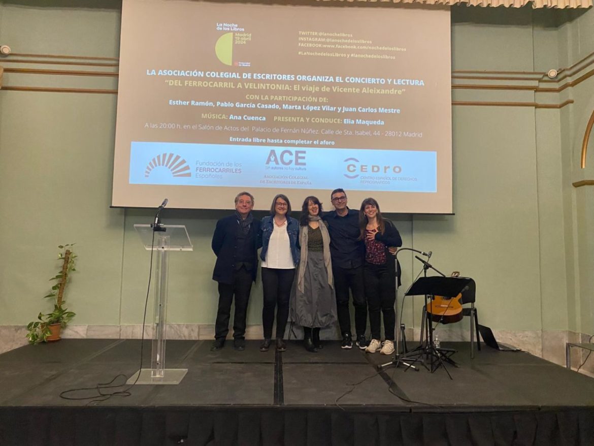 El 19 de abril, como parte de la programación de La Noche de los Libros, se llevó a cabo un recital poético en honor a la obra de Vicente Aleixandre, bajo el título «Del Ferrocarril a Velintonia: el viaje de Vicente Aleixandre», organizado por la Asociación Colegial de Escritores (ACE).